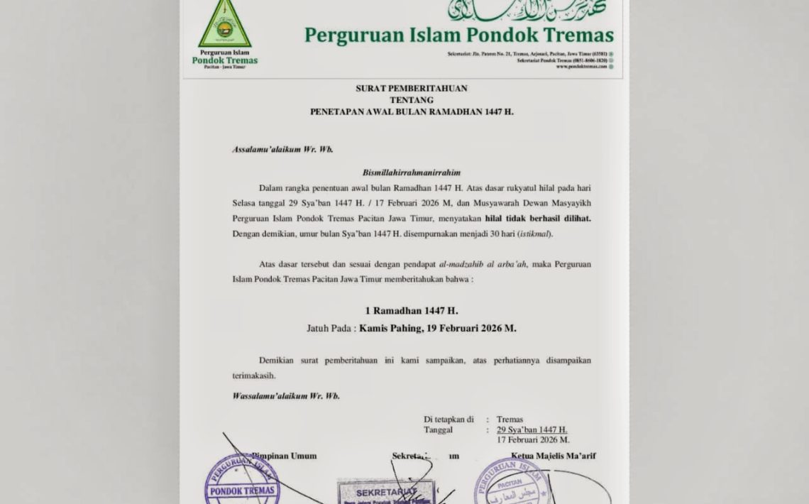 Pondok Tremas Pacitan Tetapkan 1 Ramadan 1447 H Jatuh Kamis Pahing, 19 Februari 2026